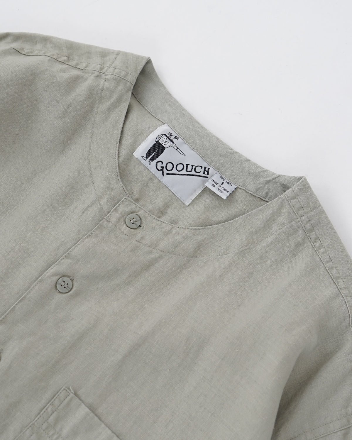 Washed Linen Collarless S/S Shirt / Pale Green
